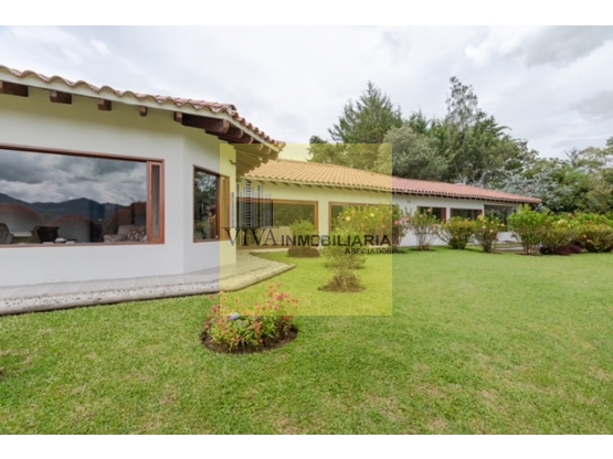Casa campestre en venta en la exclusiva Parcelación Maitamac, la Ceja, vía Rionegro. Parcelación exclusiva de 21 lotes, contiguo al mall Cantarana y cerca Exito la Ceja, ubicada en un lote de 3.371 m² con una sólida construcción de 481 m² diseñada sobre una sola plancha de concreto para mayor estabilidad y durabilidad. La propiedad cuenta con 4 habitaciones, cada una con baño privado y vestier, destacándose la habitación principal tipo suite de 78 m² con jacuzzi. Sus espacios sociales incluyen sala con chimenea a gas, terraza de 30 m² con chimenea de leña y cocina con mesón en granito. Además, dispone de garaje cubierto para 2 vehículos, parqueadero adicional, sistema de alarma 24/7 con cámaras, portón eléctrico y tanque subterráneo de 5.000 litros con sistema de filtración. Una excelente opción para quienes buscan comodidad, privacidad y naturaleza cerca de Medellín.
