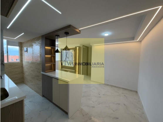 Área 48m2, 2 alcobas, closet, 2 baños, cocina integral, red de gas, sala de estar, zona de ropas, sala y comedor.